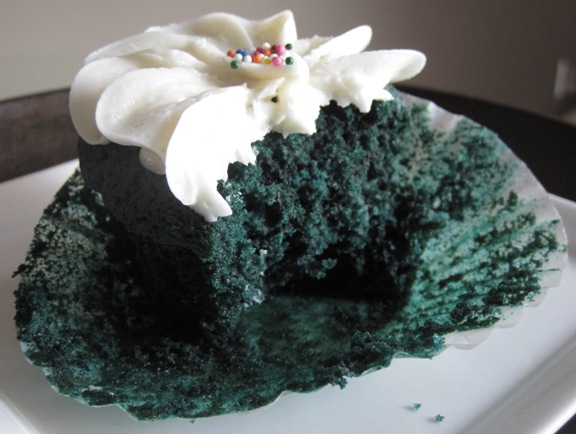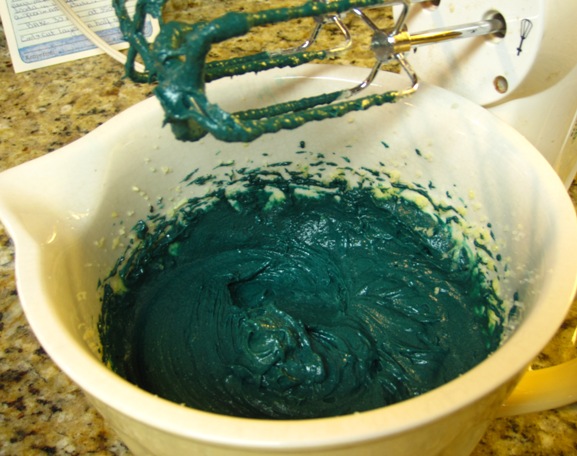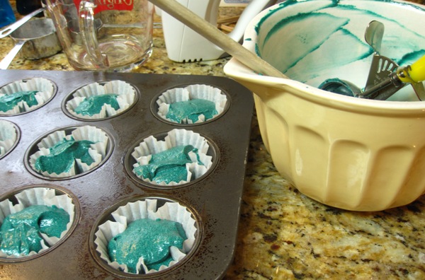 In the interest of being open-minded and broadening my horizons I tried my hand at making a red velvet. Blue seemed like a better idea than red though. I had blue food coloring gel in my pantry so I used that. Food coloring gels are very concentrated and you only need a little bit to achieve a deep color.