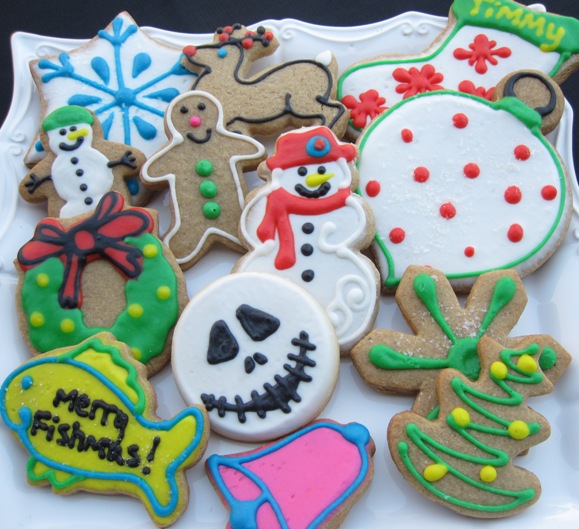 I mentioned yesterday that lots of cookies were baked in our kitchen recently. This is one of the other cookies Tim and I spent our day baking and decorating. They are fantastic. A delight with or without icing. We used the same icing as we used on the sugar cookies.