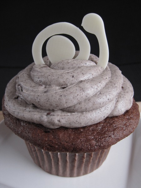 The swirls on top are very easy. Just melt a little chocolate (I used white chocolate) on a low heat in the microwave. Spoon the warm chocolate into a decorating/piping bag or a zip top bag. Cup off a small corner of the bag and swirl out the shape of your choice onto wax paper. After they cool completely you can peel them off the wax.