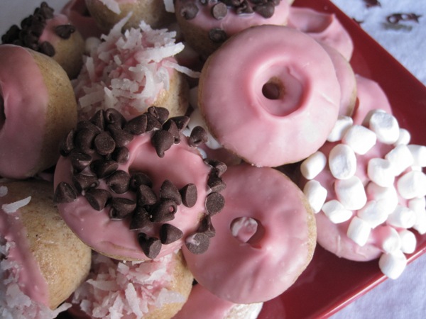 They are still good and cake like. And cute, no question. I particularily liked the ones with the mini chocolate chips on them. A pan that makes bigger, regular size donuts is probably the way to go,though. That mini pan may never again get used in my kitchen. Although, Tim wants to try tiny brownies in it. We’ll see.