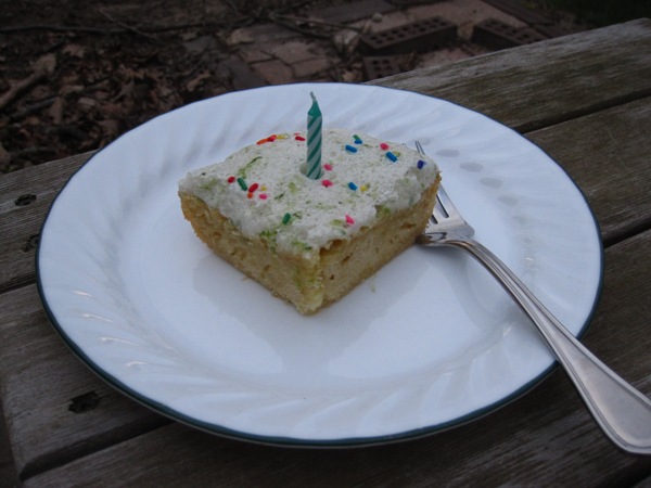 BTW. . .this is what happens to a cake sometimes when you have a food blog. You cut a piece for photos while the light is good and THEN you let the birthday girl have a go at it. Thus the missing piece.