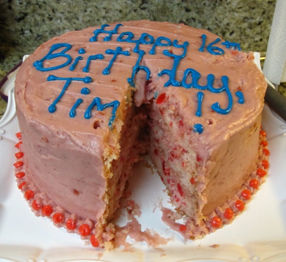 We celebrated a birthday around here this weekend. Happy Birthday, Timmy! Don’t mind the fact that the cake is pink. He likes it!