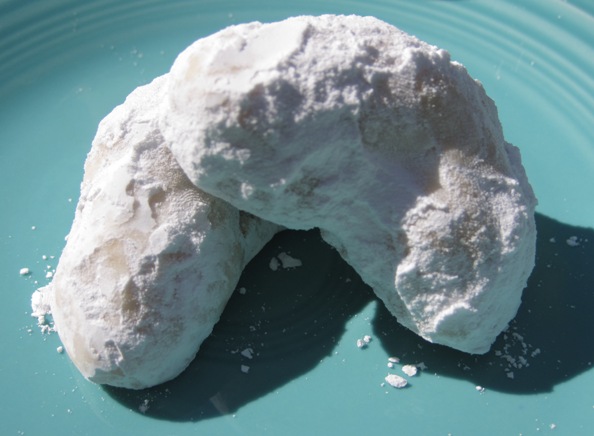 Bake on a cookies sheet at 400 degrees for 15 minutes. Allow to cool completely and toss in powdered sugar. Store in an air tight container. Makes about 25 cookies.