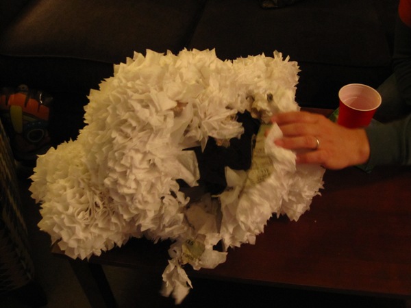 I tried to find a baby seal pinata. I searched online for days with no luck. Go figure. I had to resort to making one. And he came out pretty awesome if I do say so myself. He also took a long time to make!