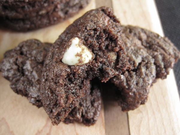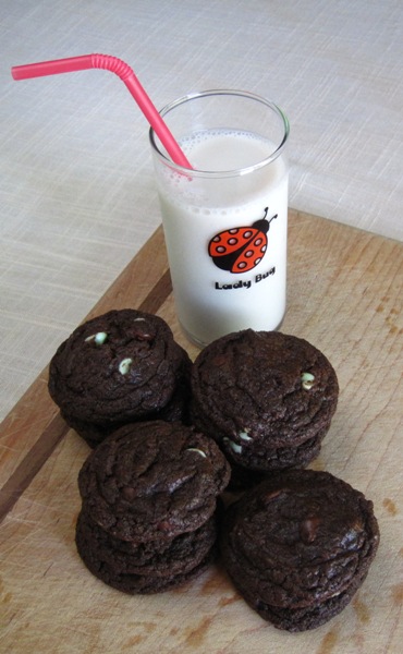 Add the flour, baking soda, salt, cocoa powder, finely ground Oreos. Mix well. Stir in the chocolate chips. Place Tablespoons of the dough onto a parchment lined cookie sheet and bake at 350 degrees for 10-12 minutes. Cool on a wire rack. Makes about 3 dozen cookies.