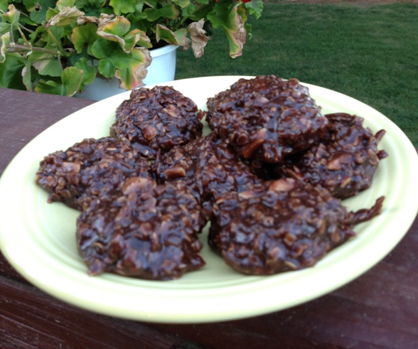 I am a fan of these cookies. I love no bake cookies. I love Almond Joy candy bars. Combine the two and I was in heaven! I had such a hard time trying to wait for them to set up so I could eat one! Or 5. . . let’s be honest!