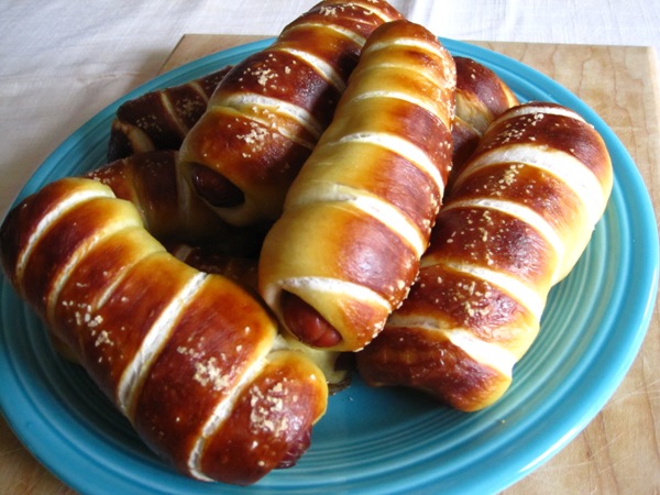 So why not pretzel dogs? So much better than a bun. Unless you make the dough into pretzel buns!