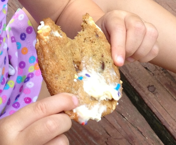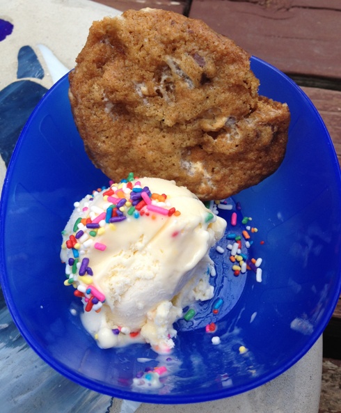 Of course, when I asked my  little cookies monsters what they thought of the cookies I got mixed reviews. The littlest cookie monster loved them. The big cookie monster said she did not. When she was pressed as to why she didn’t like them she said it was because of the marshmallows. Is she nuts? Those things are adorable and delicious. She’s only 5 years old. What the heck does she know? Clearly her palate is fatally flawed. Poor, defective, cookie monster. (But those stale sprinkles? She wanted to eat the whole bottle.)