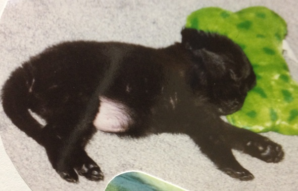Eventually she became all black again. For a long time the sides of her neck were still tan though.