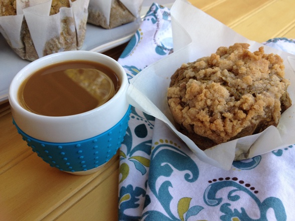 I do usually have avocados on hand though. I think you can eat avocado with just about anything. Breakfast, lunch dinner, dessert, and apparently, muffins. You can’t taste the avocado in these but they lend a wonderful moistness to the muffins. When you combine that with the slight crunch of the struessel topping you get one of the best muffins I have ever made. (Which in all honesty, is not very many muffins given my dislike of them, but whatever.)