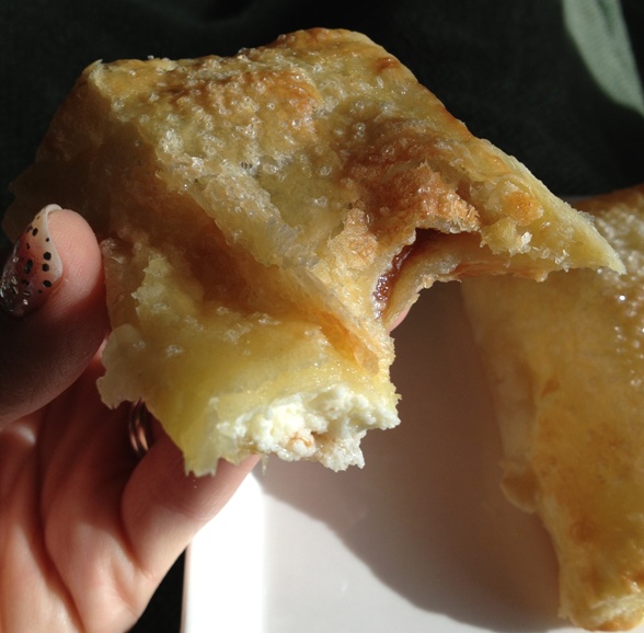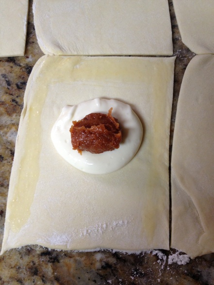 This was the first time I had attempted to recreate the pastries I had so often enjoyed while living in FL. I decided that if I was going to make them with the cream cheese layer (you find them with and without the cheese in FL) I should use an egg to make sure the mixture sets up a little and doesn’t ooze out of the puff pastry.