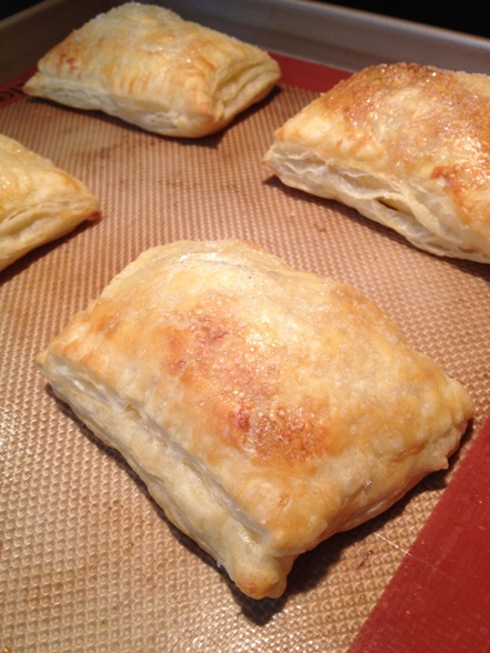 When they came out of the oven they were beautiful! Golden and puffed and none of the filling oozed out! A real success. I almost had to high five myself! Anxious to eat one, I let it cool for about 2 seconds and then took a bite. . . and all I could taste was egg. . .like a curdled custard. My elation was deflated.
