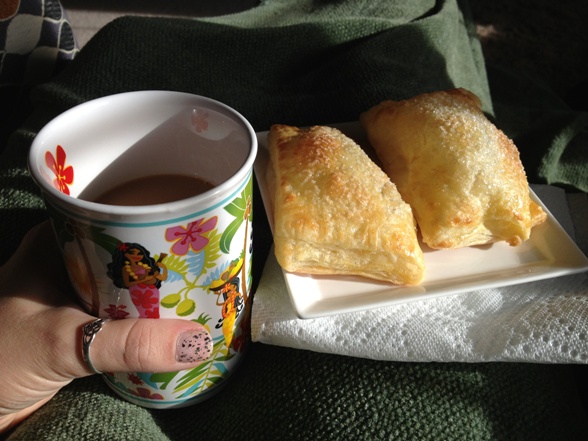 Yes, I did throw a couple on a plate, get a cup of coffee and curl up in a comfy chair in a sunny spot with a blanket and enjoy my breakfast. (Do you love my glitter nail polish?)
