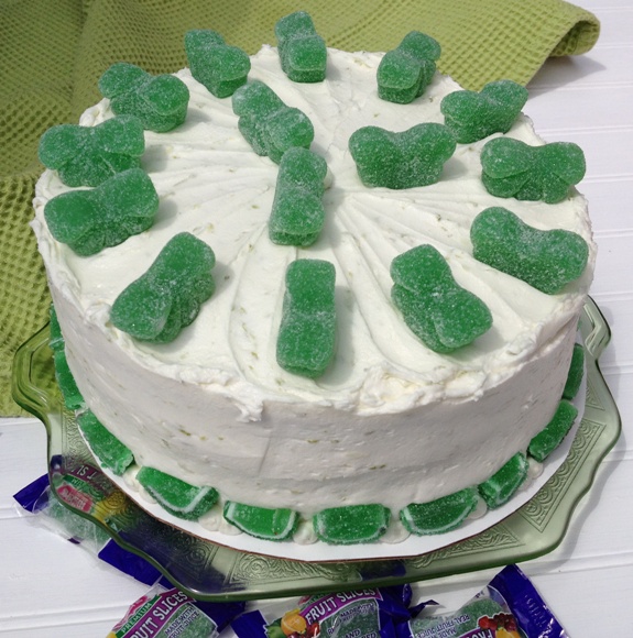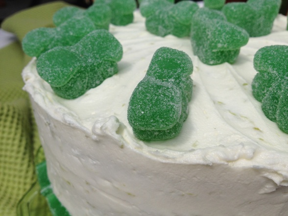 The fruit slice candies on the top of the cake ended up being green apple flavor, but at least they looked like limes!