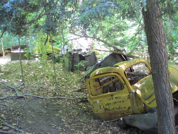 Morning three we packed up and cushioned my blistered feet with some mole skin that Tim had thought to bring. Our goals was to head north east to the inland Lake Manitou & make camp. Along the way we stopped to explore an old logging camp that has some very old ‘cars’ being reclaimed by the forest. At one time there was a small farming and logging community on the island. There are still a few old buildings falling down that you stumble upon from time to time, an old barn, an old dock, an old orchard that still produces apples, and the occasional rusted tool in the woods like the old shovel we came across.