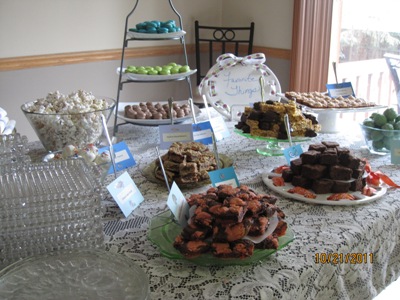 Several month ago I read a post online about a ‘Favorite Things’ party.  Basically a bunch of friends get together and swap favorite things. . what ever those things might be. So last friday night, after much planning I finally hosted one. And it was fun. Like really fun. Not like a boring purse/candle/jewelry party that you sit through and then feel guilty cause you don’t want to buy any of that junk but you feel like you have to. None of that with this party. For me it was about having an excuse to have people over and stuff mass quantities of sweets and booze into them. I mean that in itself is fun. Planning the menu was all I could think about for weeks.